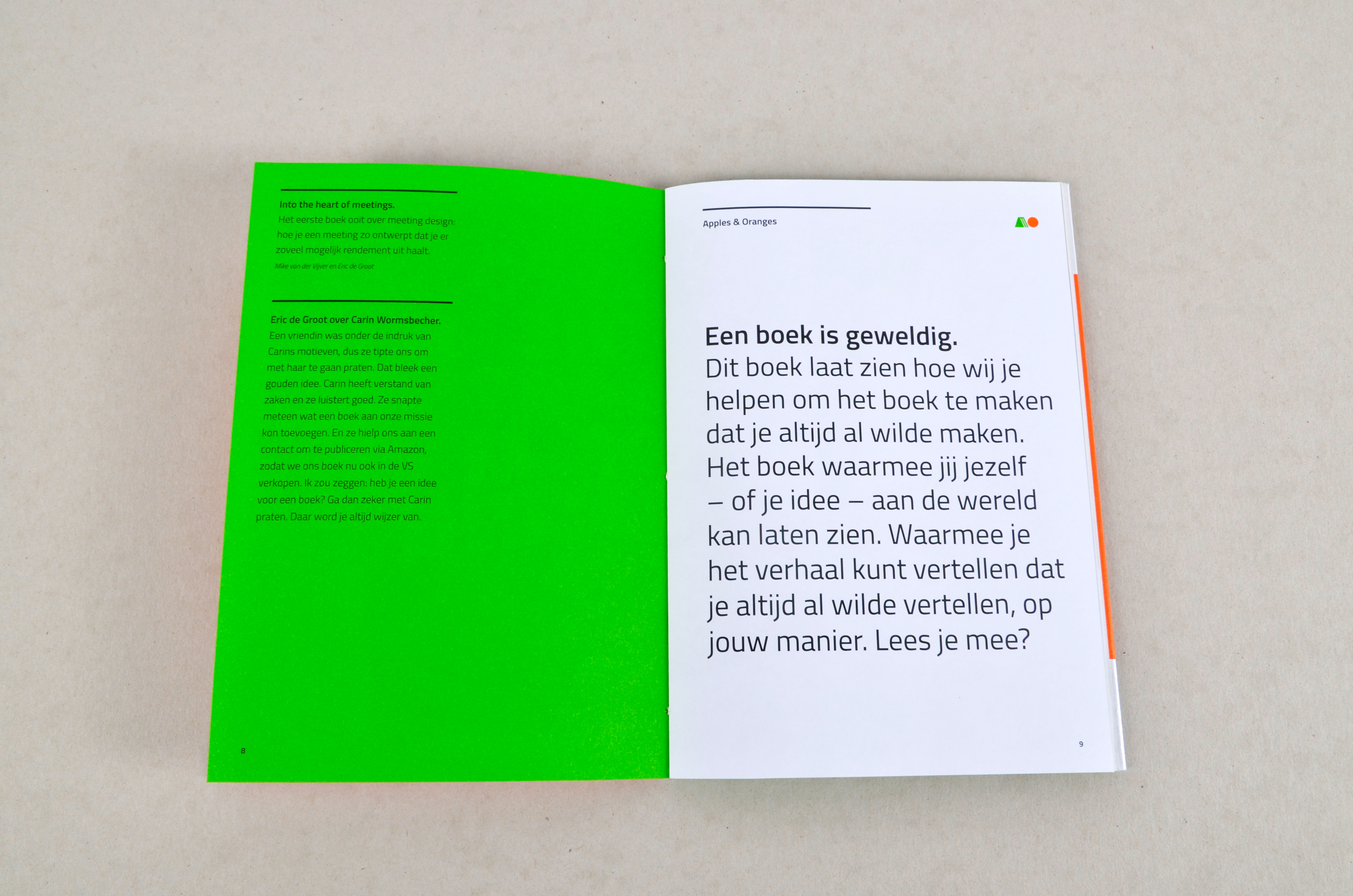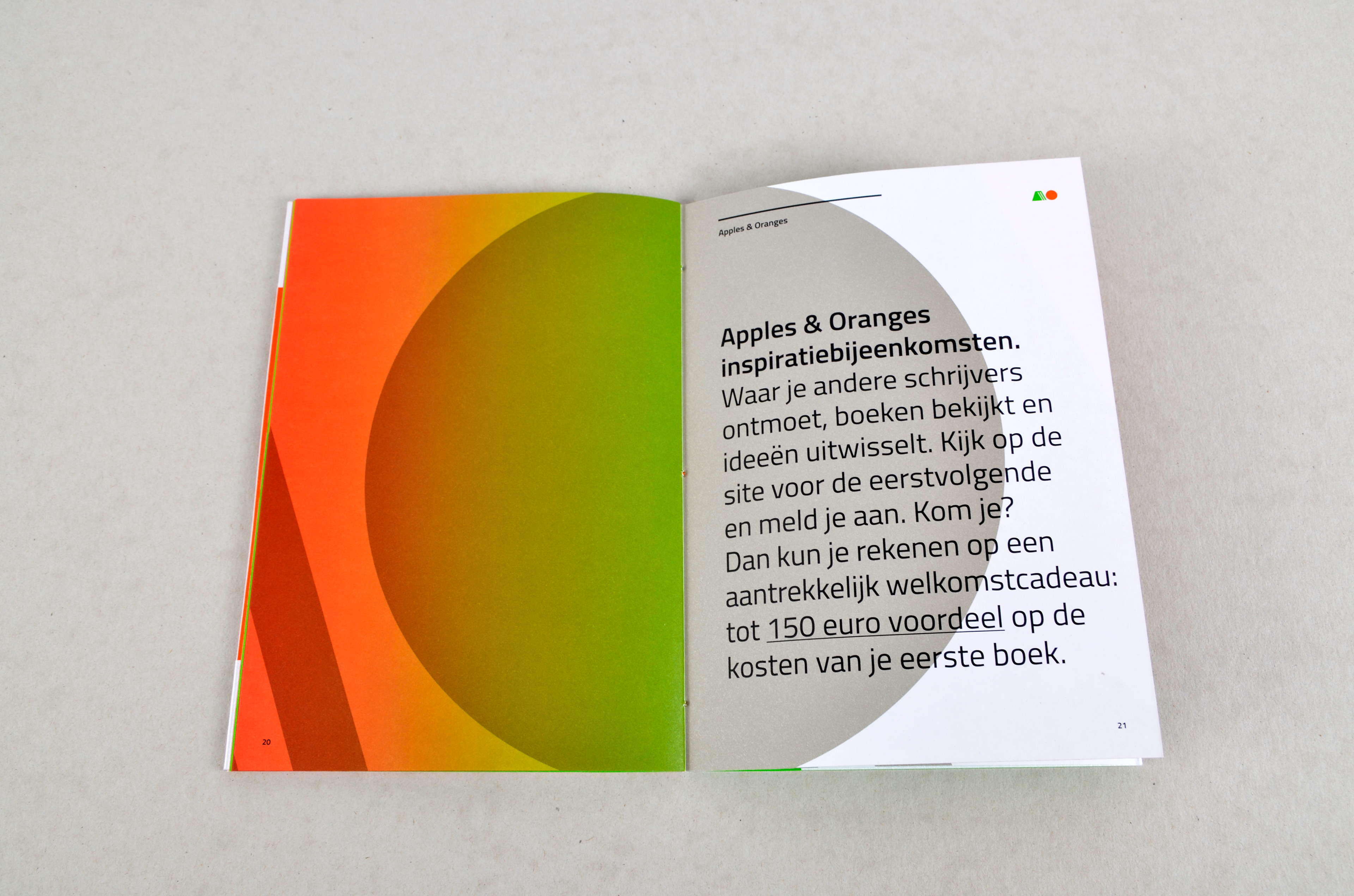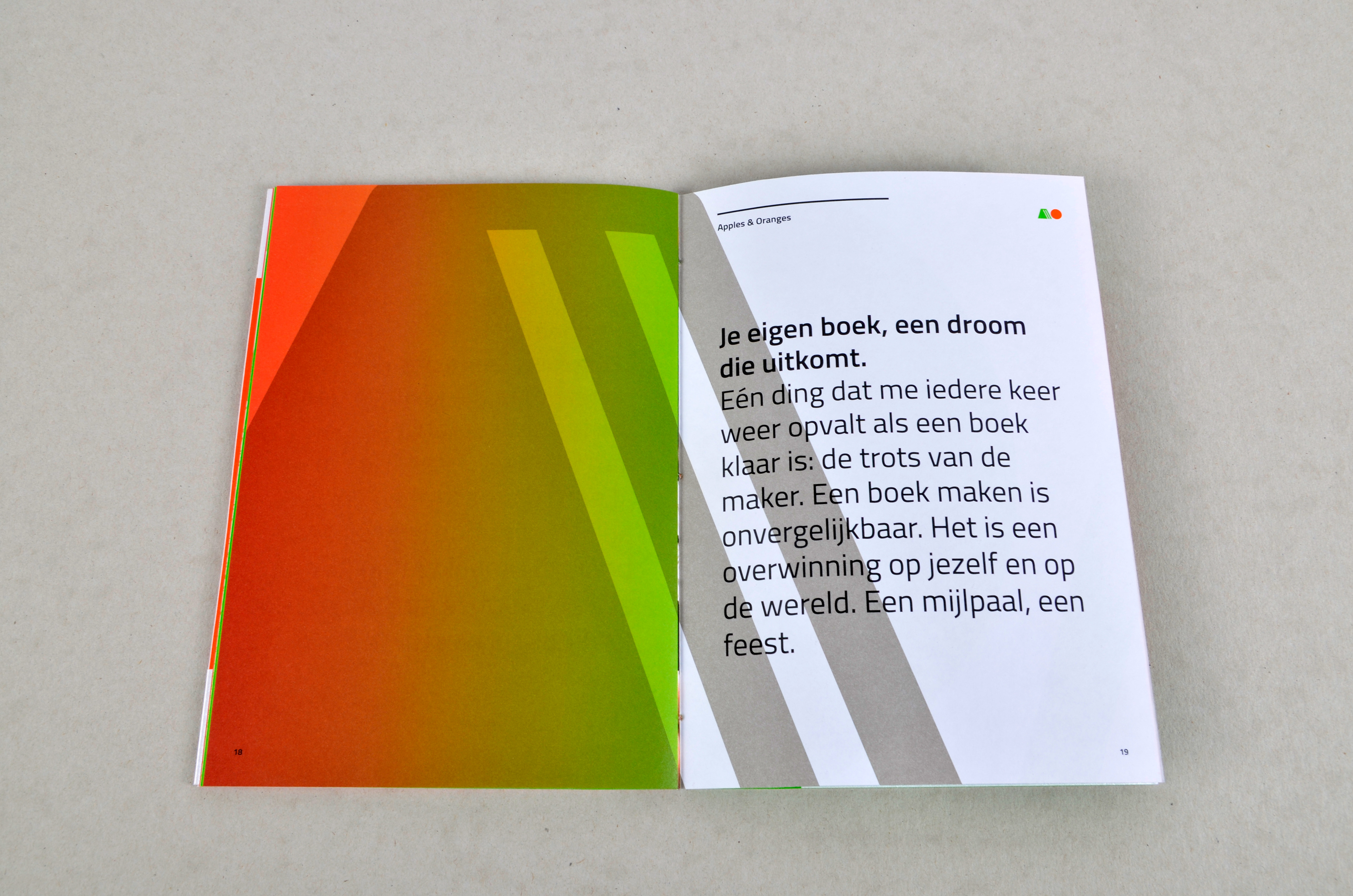 Your own book, a dream come true. Everyone sometimes fantasizes about it. Apples & Oranges is an online platform where you design, print and sell your own book. Whether it is a travelogue, a management book, a children's book or an anniversary book. Everything is possible. For example in a small edition and with a small budget. Because making a book is just a matter of doing. Apple & Oranges is an initiative of the printing company Wedding from Harderwijk. We came up with the name Appels & Oranges and added a suitable house style. The detailed story of Apples & Oranges is published in a beautifully designed booklet. This is to show you what we mean by making books.